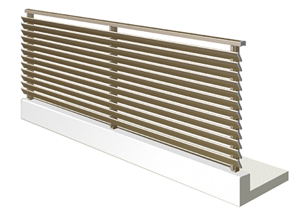 千本格子を支柱の外側に持ち出すことで、ストライプ模様の平面をおもわせるようなデザインに仕上げます。
