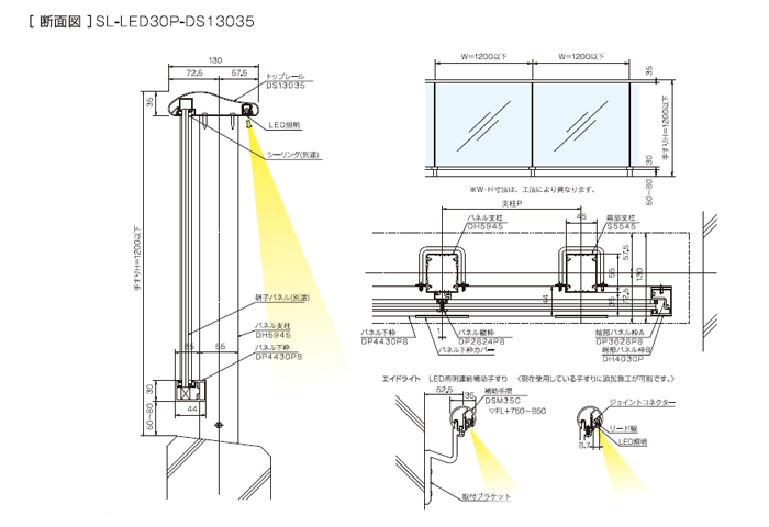 スマートな手すり見付けに、LEDライトを内蔵したトップ形状を採用した新次元の手すりです。