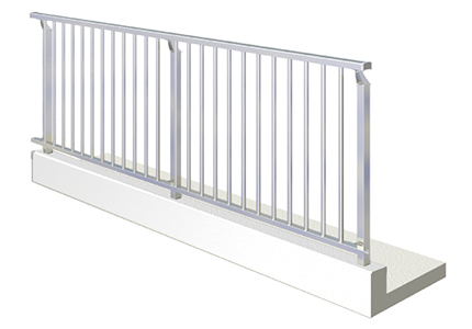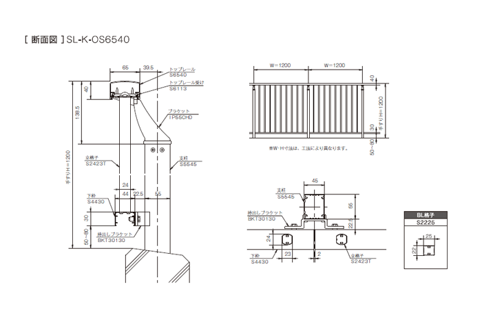 BL認定商品です。トップレールは道路向き、手すりは道路側に持ち出した手すりです。階下方向の視野が妨げられるので、高所恐怖感がやわらぎます。