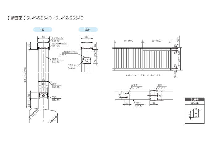 BL認定商品です。すべてのカクの形状で構成された立格子手すりの基本形です。スッキリとした仕上りになります。音鳴り防止(オプション)仕様もあります。