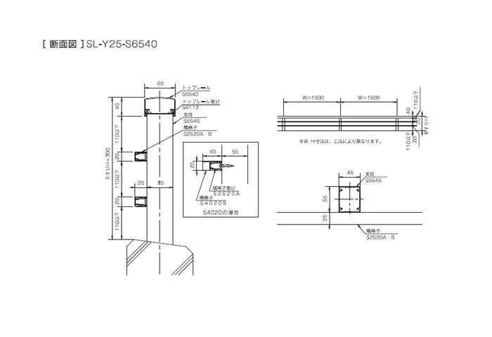 すべてカクの形状で構成された横格子手すりの基本形です。支柱の太さは2種類あります。トップのみ「半ダエン」に変更できます。
