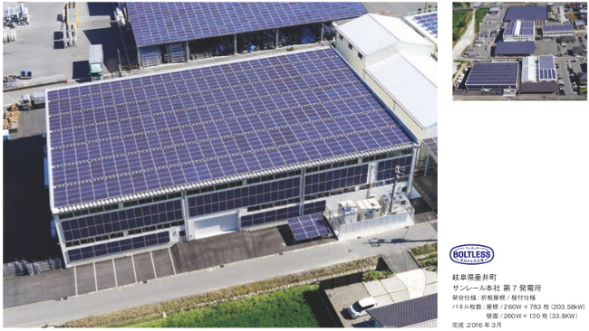 パネル枚数:屋根260W×783 枚(出力規模:約203.58kW)